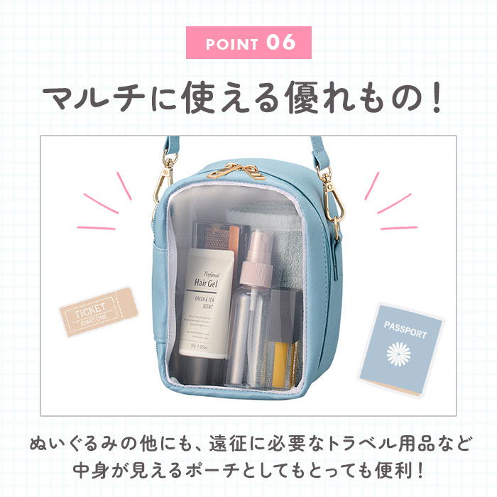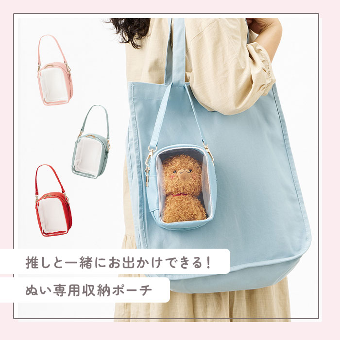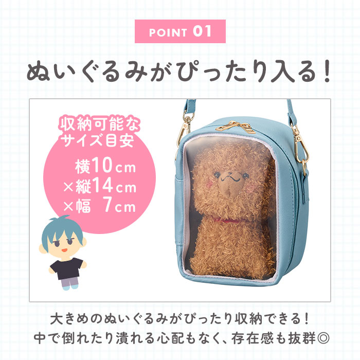 ・推しのぬいぐるみを見せてお出かけできる、前面クリア窓。お気に入りといつも一緒☆