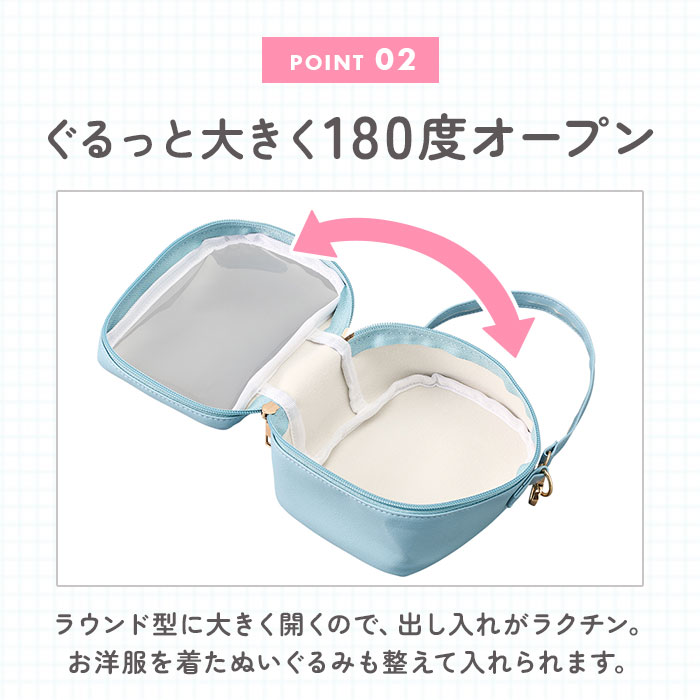 ・開口部はダブルファスナー式。ラウンド型に大きく開くので、出し入れがラクチン。