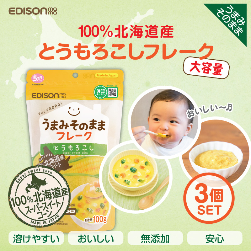 EDISONmama エジソンママ うまみそのままフレーク【とうもろこし100g 3個セット】野菜フレーク 離乳食 5ヶ月〜 ベビーフード 北海道産 ポタージュ 離乳食 介護食