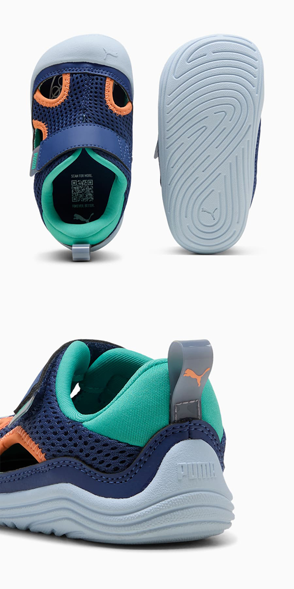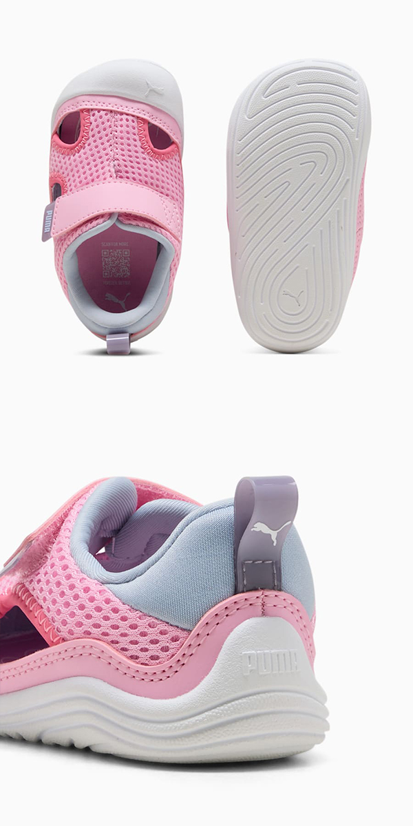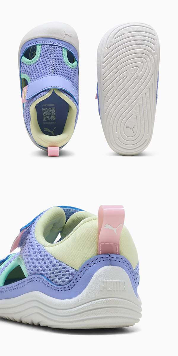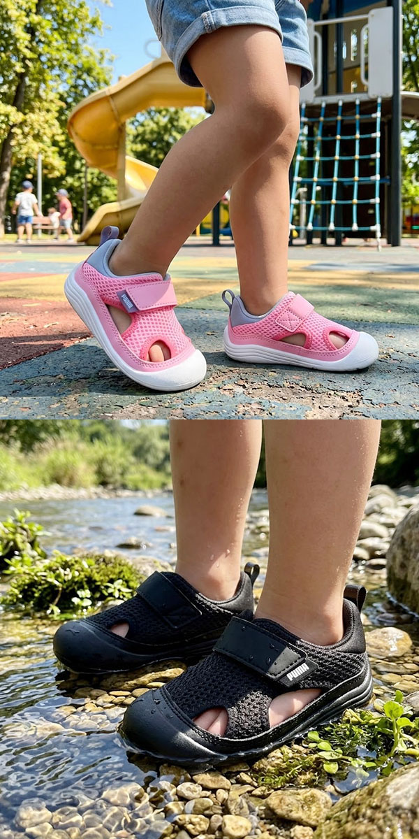 強い日差しにも負けないアクティブな毎日をサポートするためにデザインされました。ふんわりと包み込むクッション性と、動きを邪魔しないゆったりフィットで、お子様は一日中、走って、跳ねて、探検して、笑顔のまま。さらに、滑りにくいソールとつま先プロテクターが足元をしっかり守り、夏ならではの冒険をもっと自由に、もっと楽しく後押しします。安心と快適、そしてどこまでも広がる好奇心。元気いっぱいの夏を駆け抜けるためのパーフェクトなパートナーです。