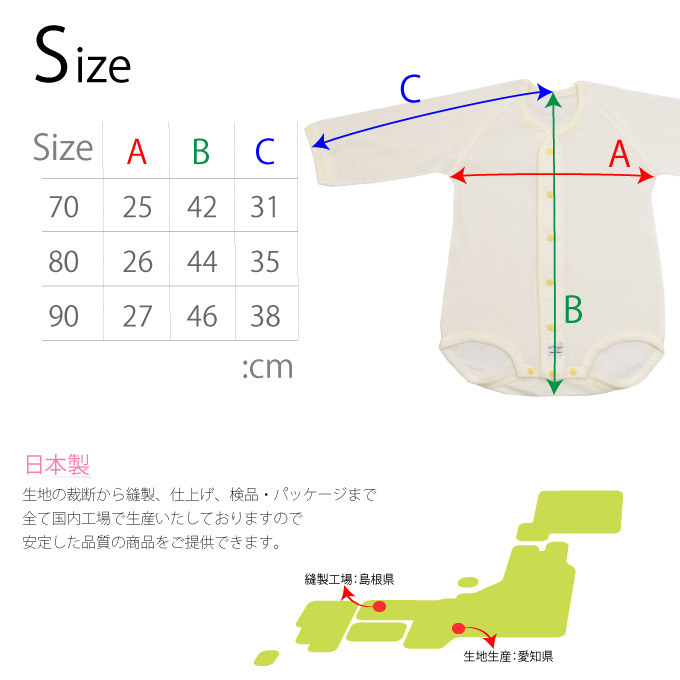 ・前開き・股部分はスナップボタンなのでお着換え・おむつ替えがスムーズです。