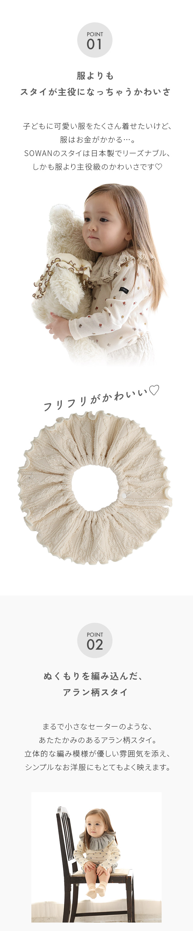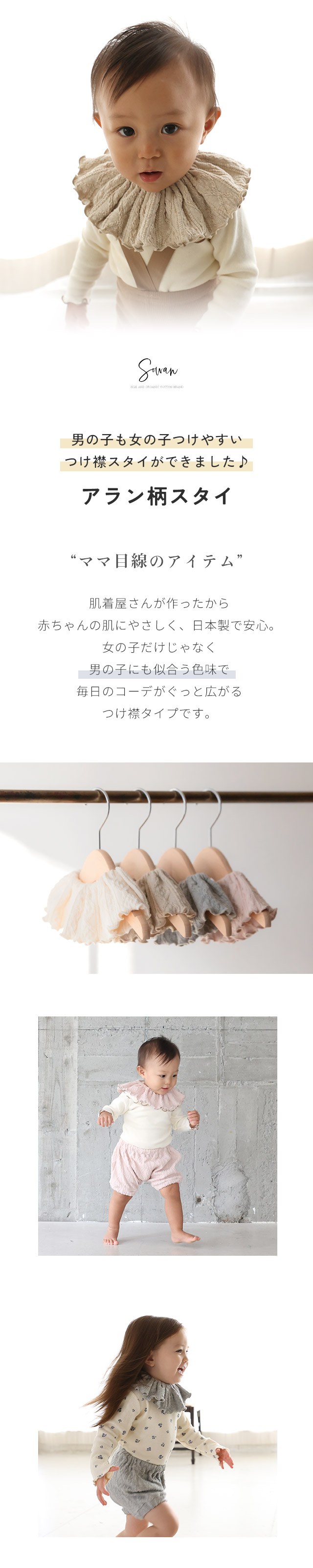 1〜2枚セット アラン柄 スタイ 女の子 男の子 日本製 コットン つけ襟 360度 360°フリル 赤ちゃん よだれかけ よだれカバー ブランド おしゃれ かわいい