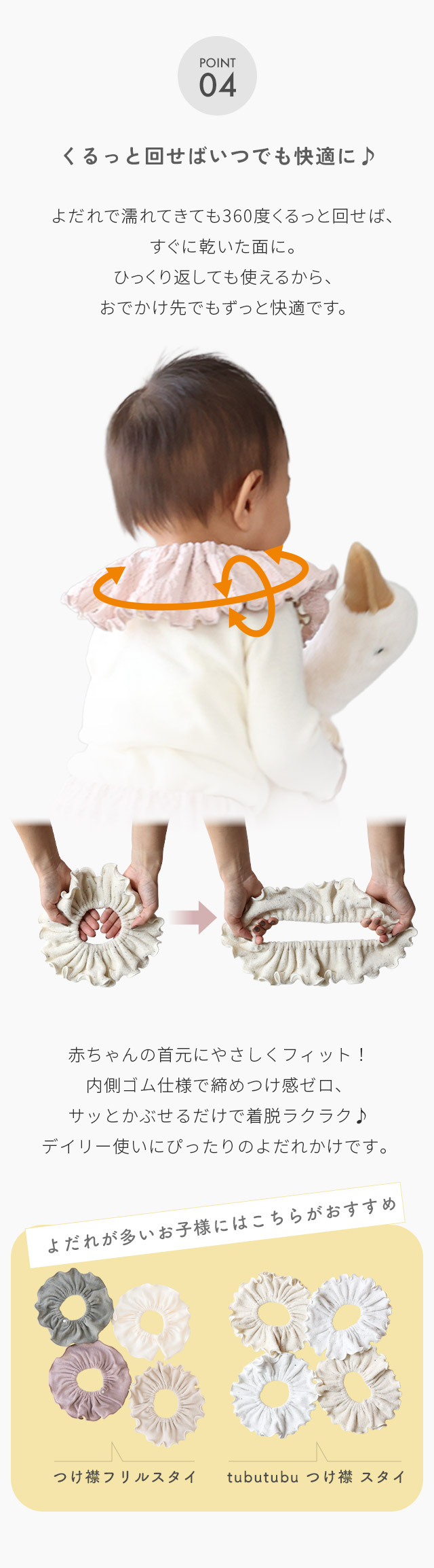日本製 コットン つけ襟 360度 360°