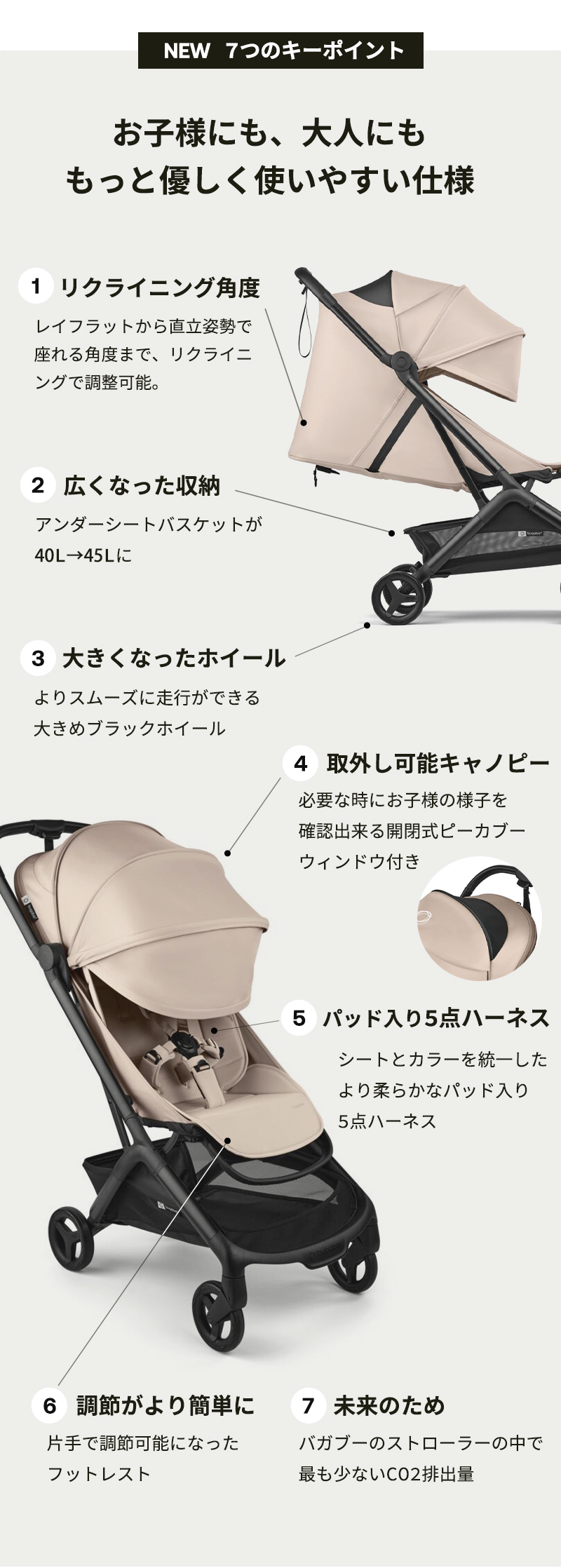 そのままで、旅行用やセカンドストローラーとして、アクティブに活動するファミリーの完璧なパートナーとなる。