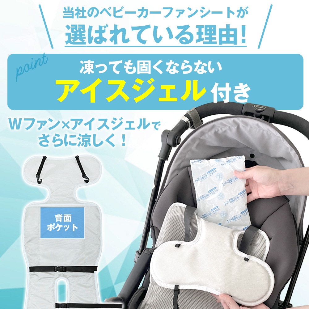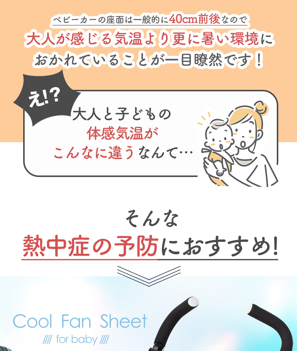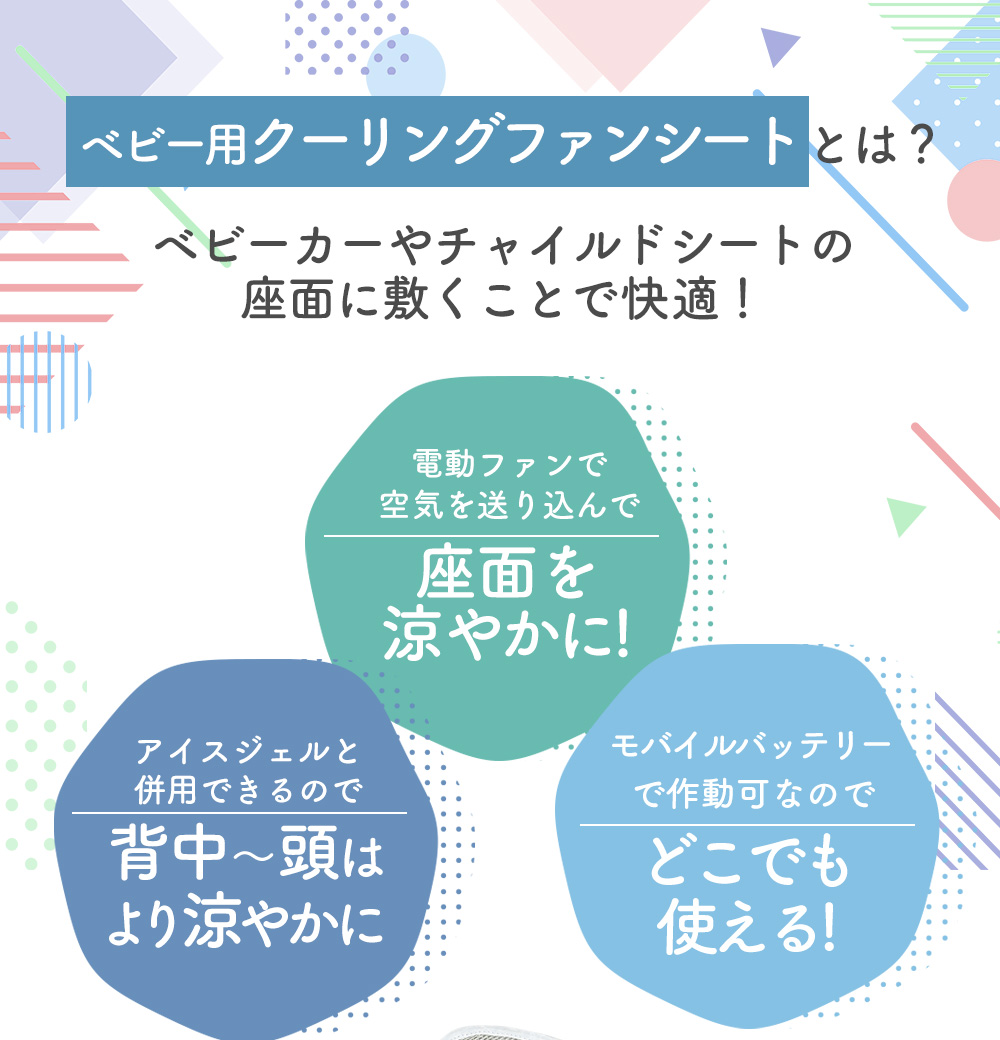 夏の問題を解消!座って涼しいベビー用クーリングファンシート!