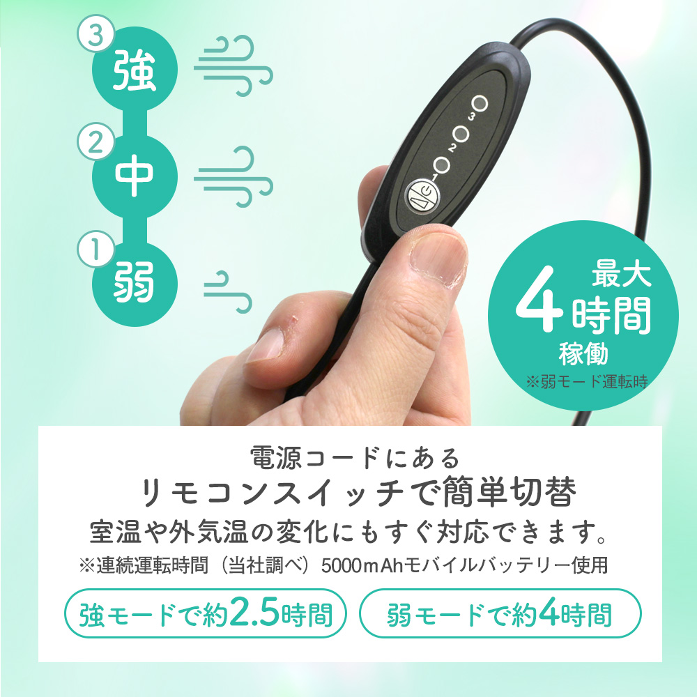 4.風量モードは3段階で切り替え可能