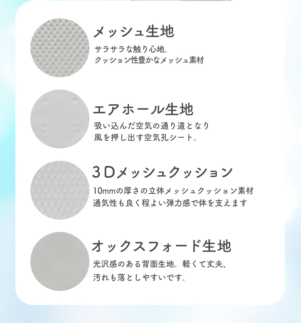 ■材質:[シート・中材]ポリエステル繊維、合成皮革、ポリウレタン[ファン]PBT樹脂、ABS樹脂