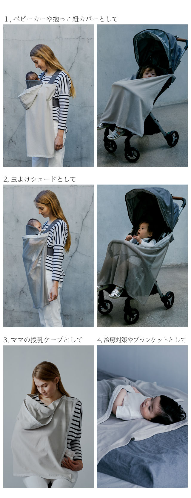 子連れお出かけのあらゆるシーンにフィットし、紫外線カットと虫よけを同時に叶える4wayベビーカバーです。