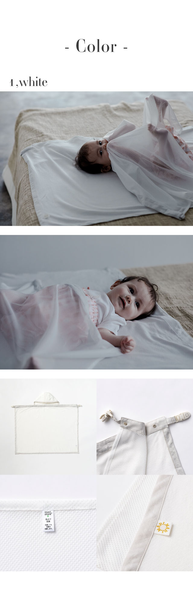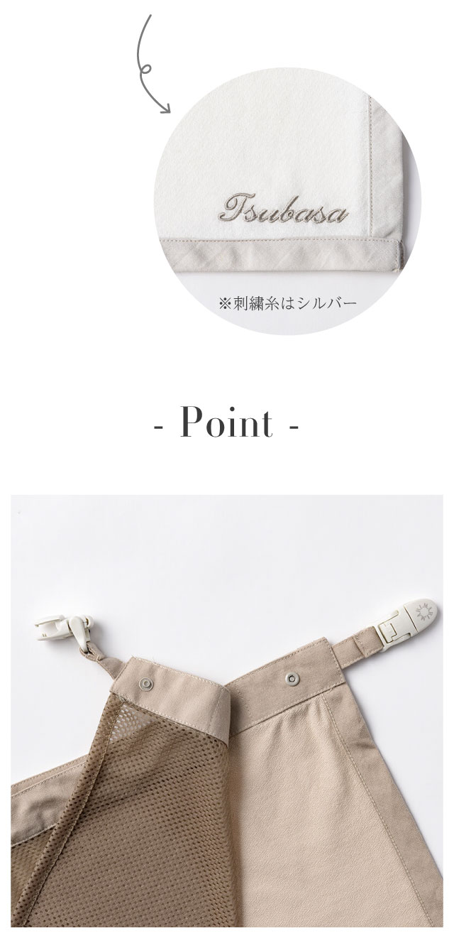 繊細なベビーの素肌を紫外線や虫から守る。虫よけ加工「インセクトシールド🄬」を施したメッシュ素材とUVカット加工を施したコットン素材の2層構造!