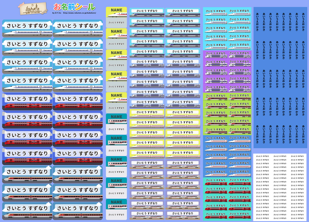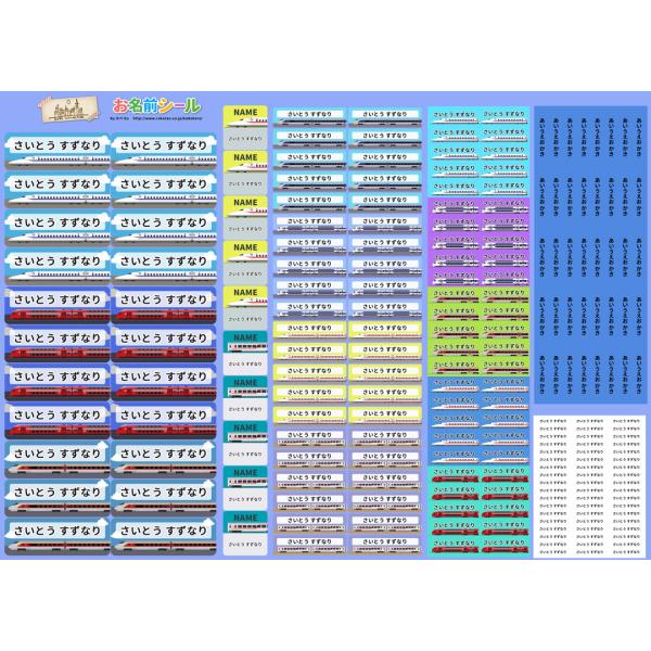 耐水お名前シール のりもの 乗り物 電車 新幹線 カラフル 大容量218枚!6種類のサイズで使いやすい! お名前シール
